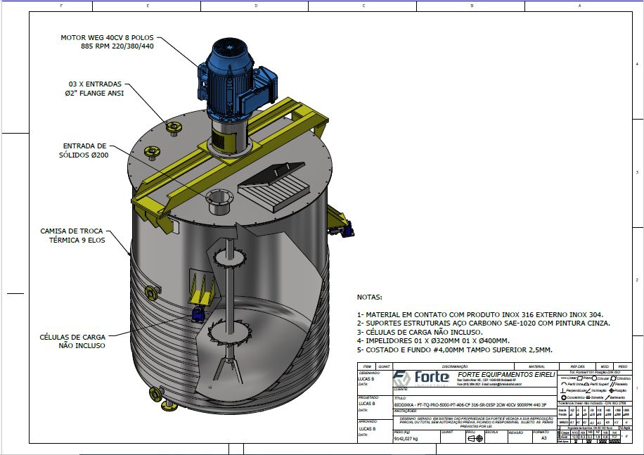O Tanque de Processo da Forte Industrial é uma unidade completa de processamento, projetada para transformar matérias-primas em produtos finais com máxima eficiência. Fabricados em Aço Inox AISI 304 ou 316, com capacidades de 200 a 20.000 litros, estes equipamentos são configurados para lidar com uma ampla gama de viscosidades e regimes térmicos.